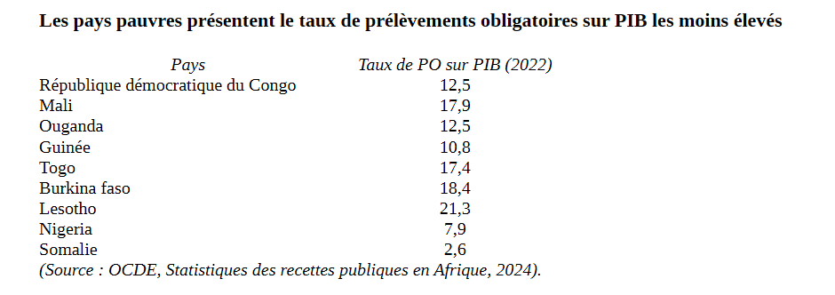 Les pays pauvres présentent le taux de prélèvements obligatoires sur PIB les moins élevés