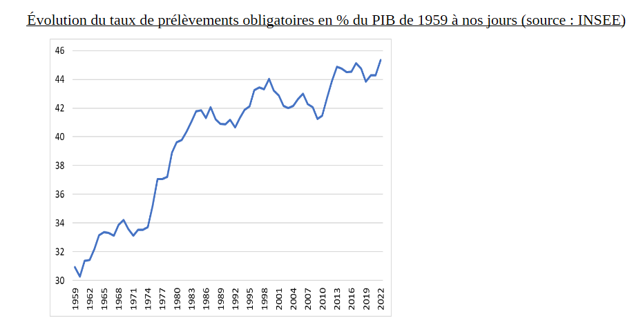 Depuis plus de 60 ans, la hausse du taux de prélèvements obligatoires a accompagné la croissance économique
