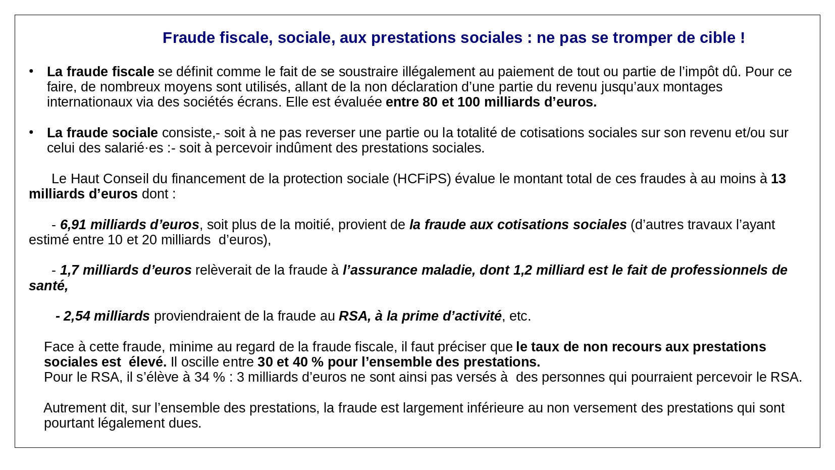 - [Rapport] Fraude fiscale, sociale, aux prestations sociales : Ne pas se tromper de cible